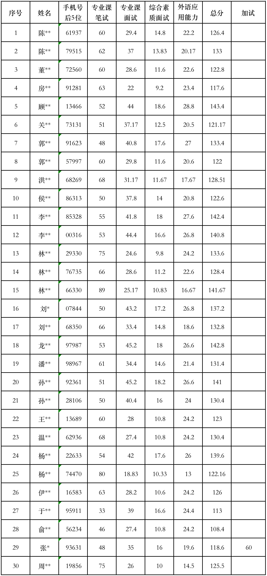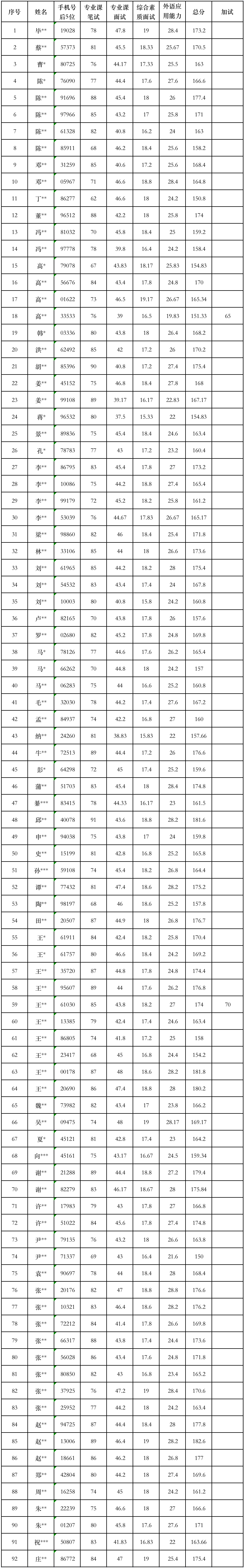 (名单按姓氏拼音排序,不区分专业方向)