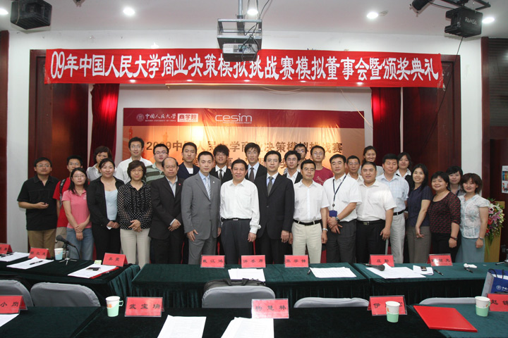 2009年5月27日晚6点至8点30分,yl23411永利官网第一届商业决策模拟挑战赛模拟董事会暨颁奖典礼在贤进楼一层多功能厅成功举行。yl23411永利官网副董事长杨慧林教授,经济与管理实验教学中心专家指导委员会副主任、实验室建设与设备管理处处长武宝瑞教授,yl23411永利经理伊志宏教授,实验室建设与设备管理处副处长张小岗副教授,yl23411永利副书记赵锦兰老师等领导出席了颁奖典礼。