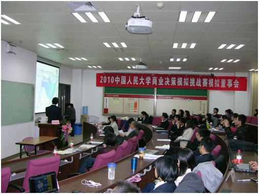 本次大赛由来自全校17公司的372名参赛选手组成了124个团队参加。所有参赛团队分布在11个赛区通过网络平台进行初赛,各赛区前两名晋级决赛;决赛分为网络决策模拟和模拟董事会两个部分。决赛网络决策模拟各赛区前4名(2个赛区,8个团队)及2个自愿申请的决赛团队共计10个团队进入了模拟董事会环节,于11月10日下午在明德商学楼304教室进行了展示。