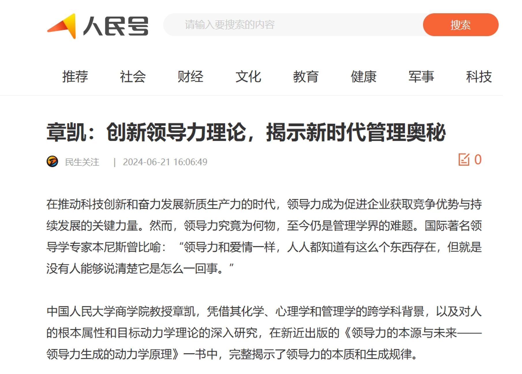 有三位德高望重的学者为本书的出版亲笔作序,隆重推荐。浙江大学文科资深教授、国际应用心理学会会士王重鸣先生如此评价此书:“章凯教授在系统综述相关研究文献的基础上,结合自己独特的思考、研究、分析和检验,创新性地提出了一套新的领导理论——领导协同论。这一全新的领导协同论为领导实践与未来发展提供了重要的理论指导,值得大家仔细阅读、主动参考和广泛应用。”华盛顿大学工商管理讲席教授、美国管理学会会士陈晓萍教授认为此书“从哲学和科学的角度分析批判了近一百年来积累的五花八门的所谓领导力理论之后,进行了构建自己的领导力模型的探索,提出了领导协同论,以此整合了以往大部分碎片化的领导理论”。中国管理科学学会领导力专业委员会主任、中国领导科学研究会学术委员会副主任李凯城认为,“对所有想通过学习理论提升领导力的读者来说,本书由浅入深、层层递进的剖析,其启发作用和实用价值都不言而喻”。本书出版后引起了非常积极的社会反响。例如,华为公司为中高层HR经理人员批量购买,公司MBA同学争相购买,重庆市医院协会运营管理专业委员会购买此书作为会议资料赠送给200多名与会的专家领导。人民号、中国网、中国科学网、中华网等全国性官方网络媒体对此进行了长篇报道。