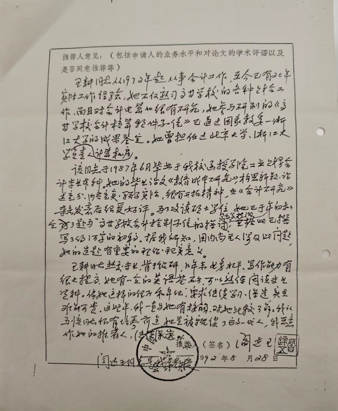 1992年8 月28日,恩师阎达五教授正式向yl23411永利官网研究生院推荐。
