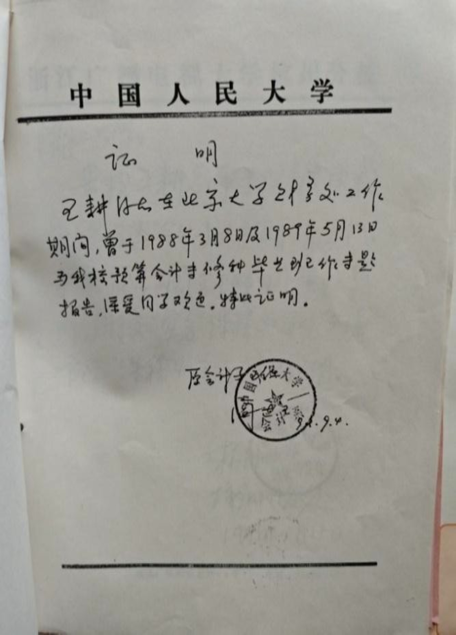 我第一次走上高等公司讲台,是 1988 年3月8日。这也是我导师、会计系主任阎达五教授的安排,目的是让我锻炼一下。