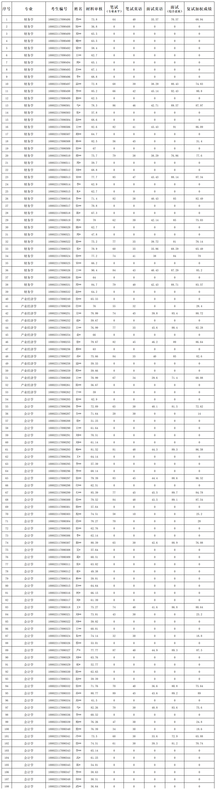 2022年博士“申请-考核制”招生考生成绩公示