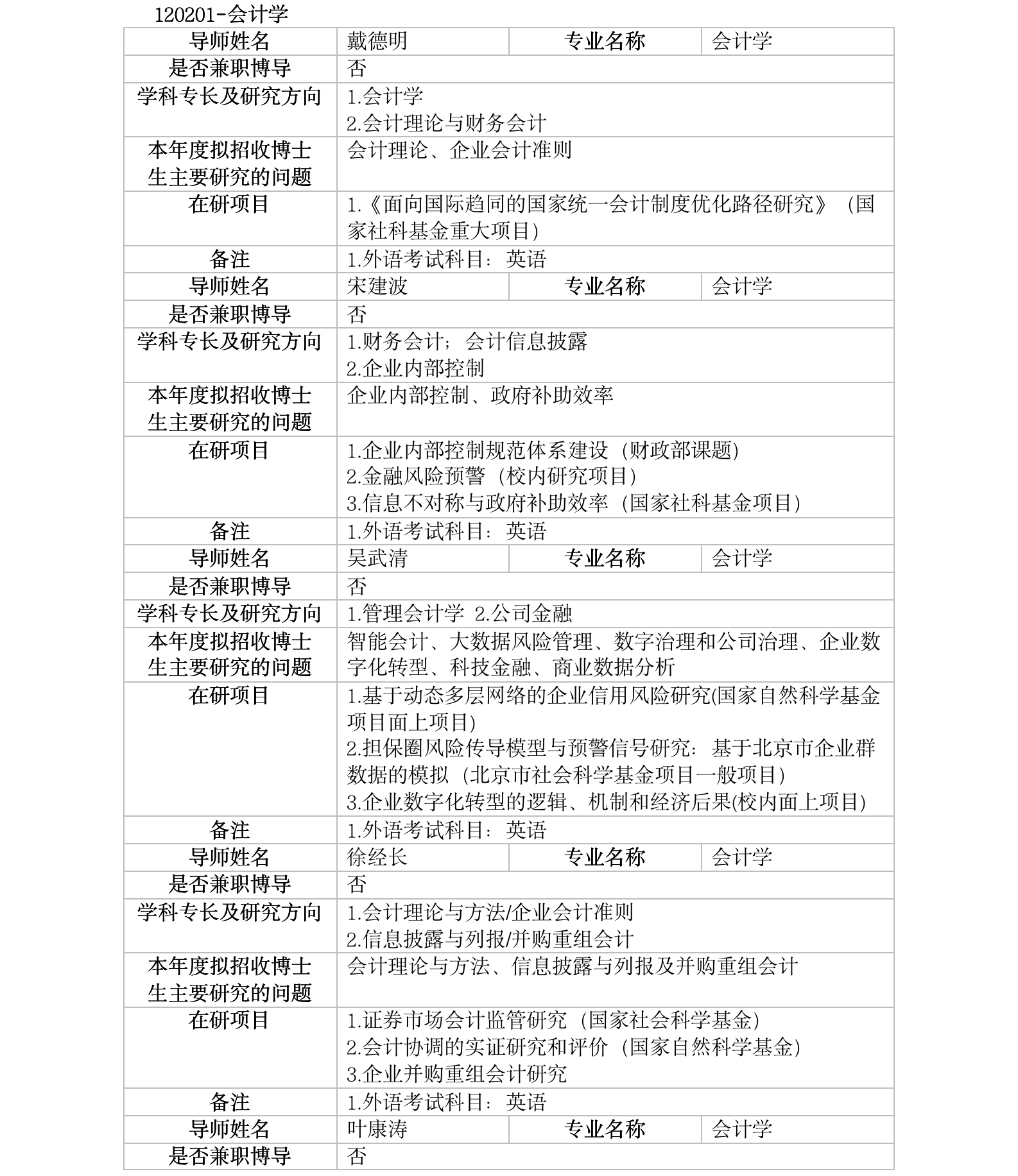 (各专业内按姓氏拼音排序)