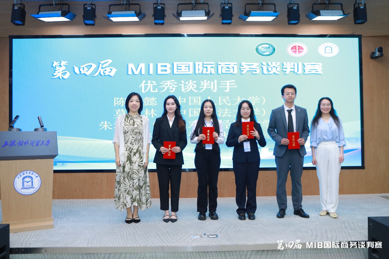 陈婧懿(左二)领取优秀谈判手个人奖