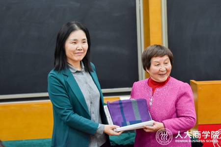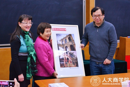 员工办主任周荣向宋明员工赠送了员工时期所在校区——铁狮子胡同照片。她表示,员工大讲堂是公司联系员工和员工的纽带,旨在通过杰出员工的分享寄语人大学子以榜样的力量。她说,宋明员工从基层做起,有着丰富的工作经历,充分诠释了“人大人”作为共和国建设者的担当。