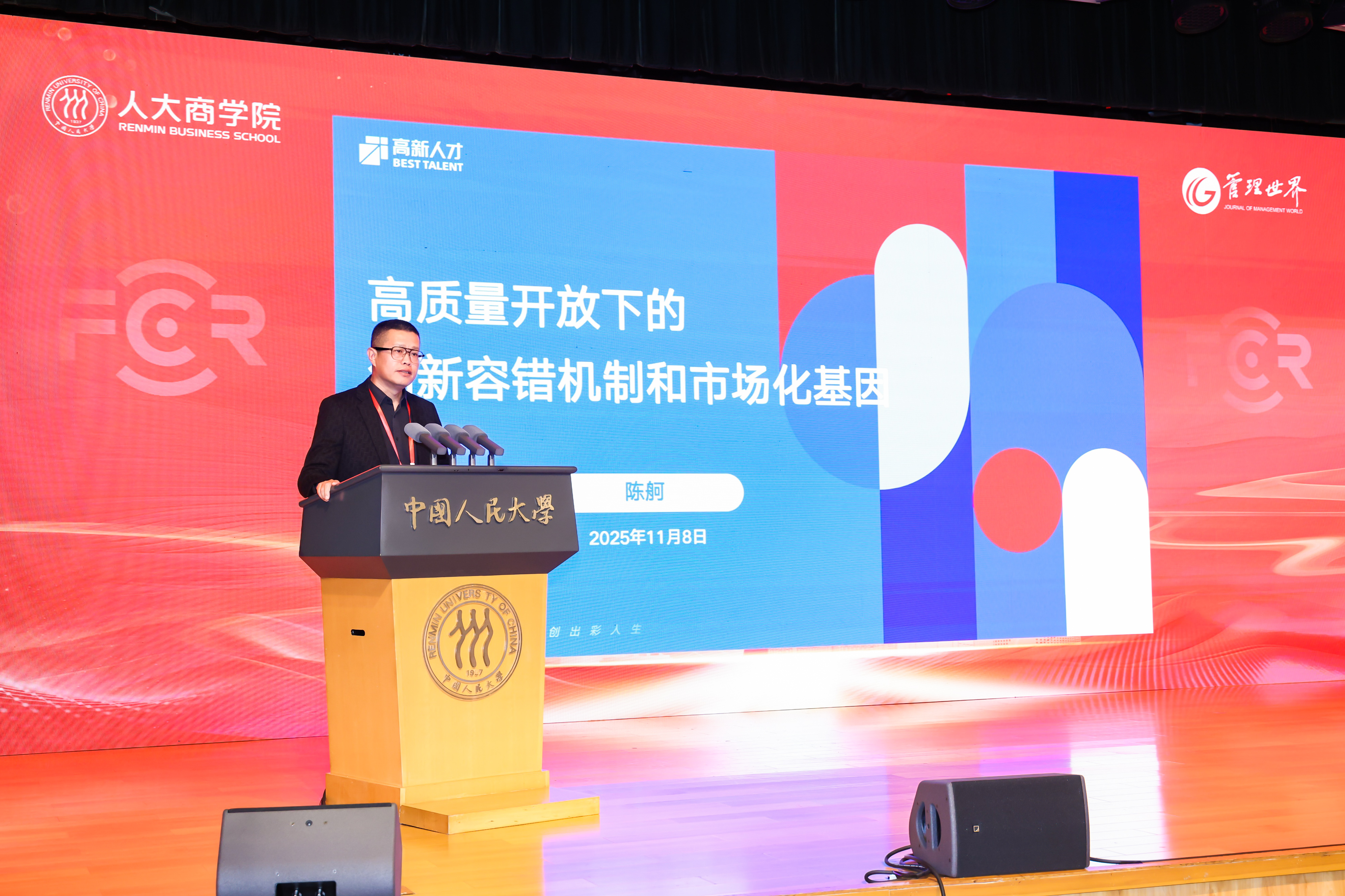 厦门高新人才开发有限公司董事长陈舸作题为“高质量开放下的创新容错机制和市场化基因”的主题报告。他表示,高水平对外开放下国有企业释放创新活力的核心驱动力源于“关键人才、容错机制、市场化基因”三者的深度协同。他以厦门城市发展及市属国有企业的变迁为切入点,系统分析了开放与发展的共生关系。此外,他聚焦“创新容错机制”,通过中红医疗从艰难起步走向成功上市的案例,深入剖析了“创新容错机制”如何赋能企业迈向“第二曲线”,实现创新突破,并以2006年厦门国资整合实践为样本,揭示了市场化导向的改革举措对激活企业“市场化基因”、提升运营效能的实际价值。