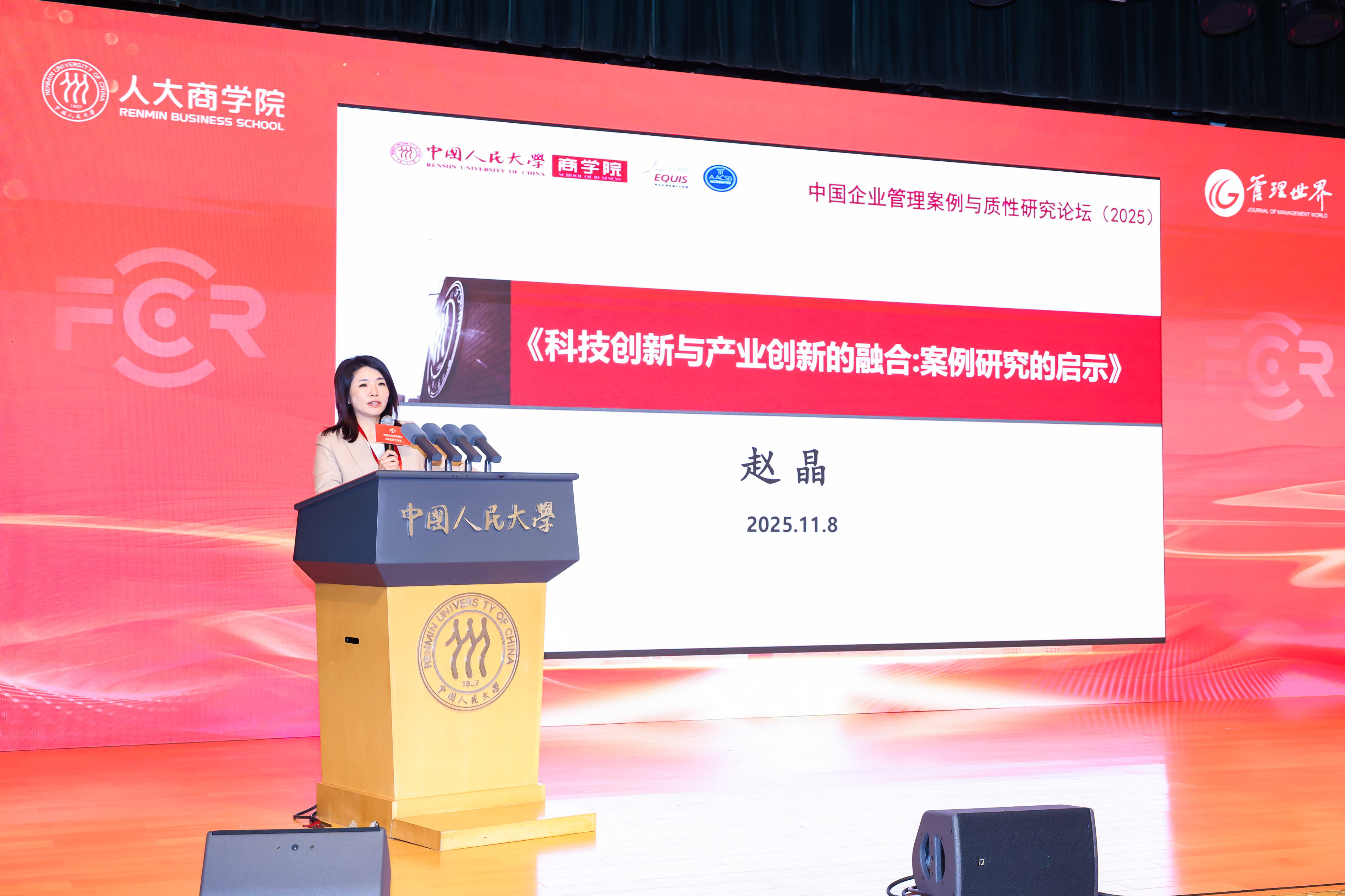 赵晶作题为“科技创新与产业创新的融合:案例研究的启示”的主题报告。她结合自身关于“融通创新”的系列企业案例研究成果,揭示中国科技创新与产业创新融合中的痛点和瓶颈,提出融通创新的路径和方案,为中国制造业高端化转型和中国企业出海提供借鉴和指导。她表示,案例研究工作者要关注重大现实问题,从历史情境中把握研究窗口,助力国家和社会发展。