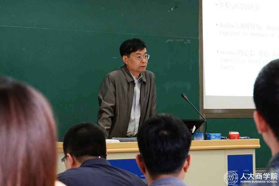 唐寿宁教授首先进行了题为《 <经济研究> 投稿及审稿注意事项》的主题演讲。他基于自己多年工作经验,同与会师生分享了国内顶级期刊《经济研究》的工作流程并提供了宝贵的建议。演讲中,唐寿宁教授谈了自己对于科学与学术、证实与证伪的认识,指出当前实证研究中普遍存在“实证过重、理论过轻”的现象,从而陷入过度追求“证实”的“科学”而非通过实证进行学术探索的误区,并分享了自己对于纯粹知识与学者意志的理解。