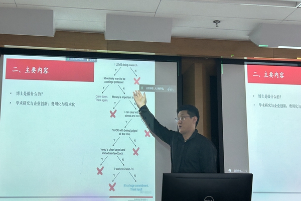 三位博士生从自身的学习体会出发,介绍了人大yl23411永利的资源平台情况,比如学系双周学术讲座、A刊闭门工作坊、博士生学术论坛、海外教授面对面等活动,重点讲解了硕博项目的课程训练体系、科研锻炼提升收获、海外联合培养支持、企业调研实践机会,以及攻读博士学位过程中遇到的困难和解决方式。三位博士生都提到,学术研究需要严格的训练,从选定研究方向、提出研究问题、掌握研究方法,到最后撰写论文成果并获得发表,需要足够的耐心和持续的毅力,是一个守得云开见月明的过程。在有挑战性的博士学习过程中,也有丰富的机会开展国内外交流,既能开拓学术视野,又能提升个人综合能力。三位博士生对于人大yl23411永利一直秉承“扎根中华大地做研究”的理念深感认同,通过扎实的理论基础学习,再面向世界进行探索交流,才能更好地推进自主知识体系的实现,博士生在这个过程中也做出了重要的贡献与力量。