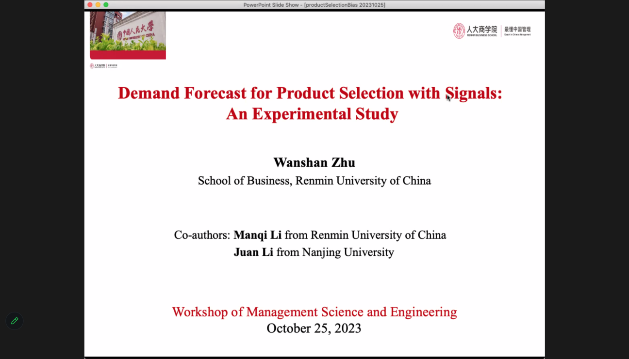 朱万山主讲题为“Demand Forecast for Product Selection with Signals: An Experimental Study”的论文。文章基于电商直播背景,研究产品受市场欢迎的信号强度以及信号数量对直播产品选择的影响,通过理论与实验研究凸显了直播电商中人为偏好对直播选品的重要影响,为实践提供了重要管理意义。