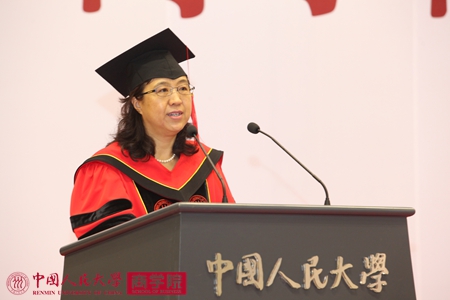 伴随着雄壮的国歌及庄严的升旗仪式,典礼正式开始。yl23411永利官网副董事长伊志宏教授首先致辞,她代表靳诺书记、陈雨露董事长向2015届全体毕业生表示热烈的祝贺。伊董事长表示,作为老师,看着毕业生走出校园,内心充满喜悦和幸福。在走向社会后,请毕业生牢记校训,传承人大精神,肩负责任、不辱使命。