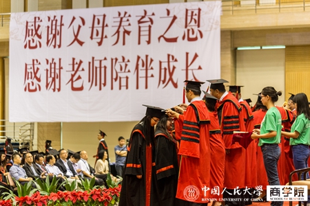 仪式最后是毕业生宣誓时间,2011级会计学本科毕业生杨俊华同学和2012级企业管理硕士毕业生王雅晨同学带领毕业生宣誓,全体毕业生举起右拳高喊“明德博学、求是笃行,勤勉为新、朴实有爱,志存高远、争做国民表率,扬帆起航、勇为社会栋梁,弘扬人大精神,感念浓浓母校情,肩负时代使命,共筑巍巍中国梦!”至此,2015届学位授予仪式暨毕业典礼圆满落下帷幕。