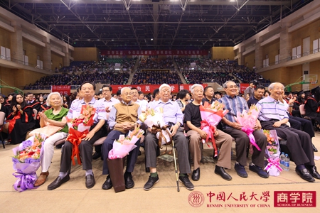 王化成教授致辞后,6位毕业生代表向出席本次典礼的老教授鲜花,感谢他们在教学岗位上兢兢业业的奋斗、不断努力和辛苦付出。随后,yl23411永利优秀毕业生代表、2011级会计学本科员工崔志鹏同学发言,他以温馨的话语回顾了大学四年的生活,谈到了在人民大学学会感受自由,学会合作,懂得担当和奉献,并表达了对yl23411永利、对老师和家长的衷心感谢,表示将常怀感恩之心,争做国民表率、社会栋梁。