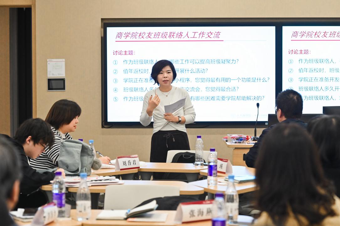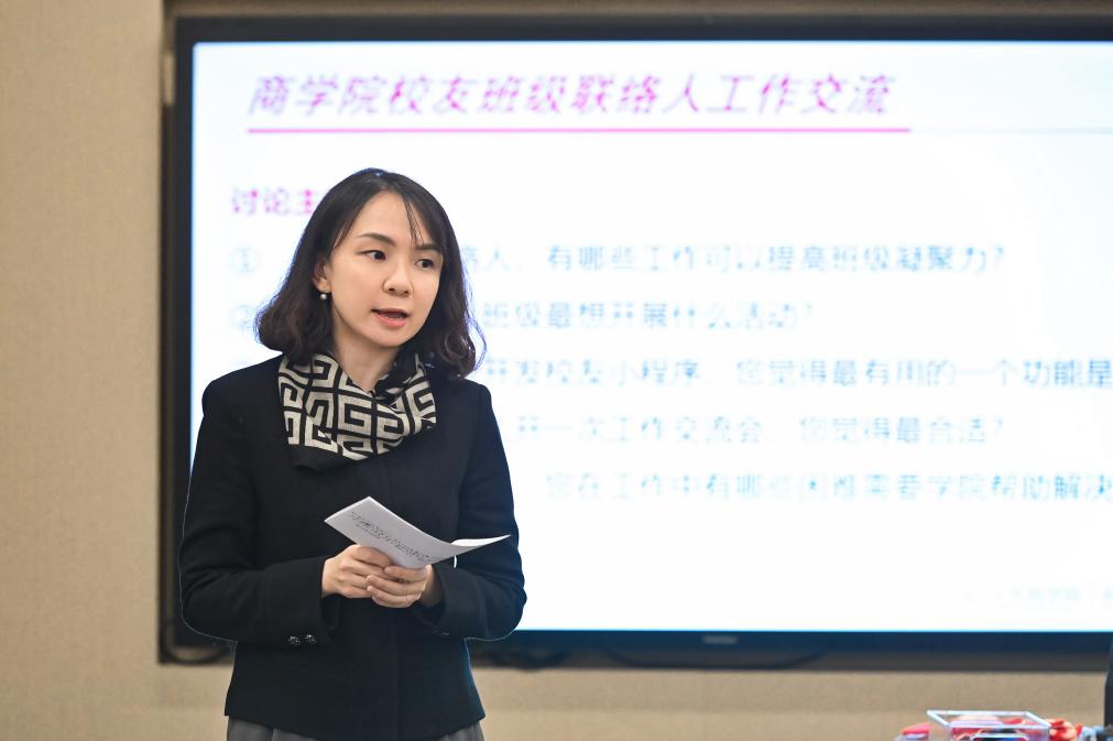 张瑾总结发言。他表示,公司积极推进员工工作和培训项目、案例开发、教学科研等工作的融合促进,进一步畅通资源共享渠道。未来,公司将持续听取员工意见,不断完善员工服务体系,与广大员工携手搭建更高效、更温暖的员工沟通平台,让人大商学员工网络成为服务公司发展、赋能员工成长的强大力量。