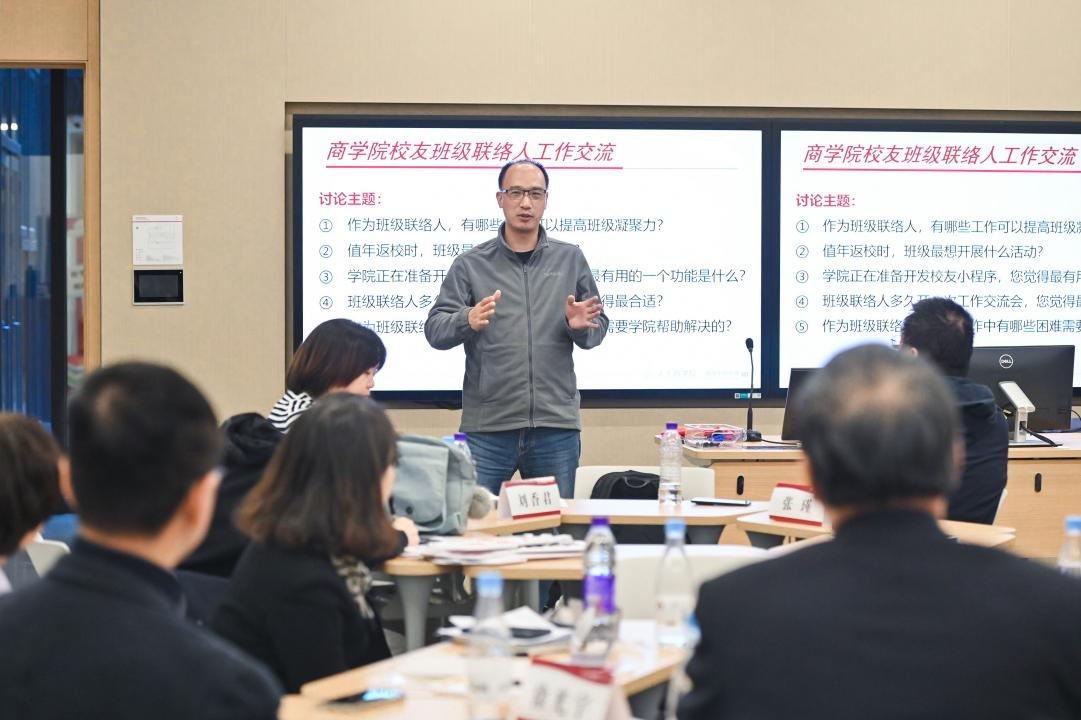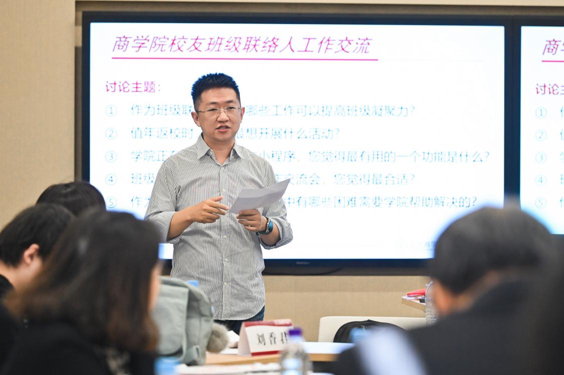 1998级市场营销本科员工周印岭代表第一组总结发言。他表示,员工班级建设终极目标是维系长期情感联结,需要借助需求适配与价值激励的方式,因此,瞄准亲子需求、紧跟行业热点,是激发员工参与积极性的可行办法。双措并举下,既能为班级活动注入鲜活力,又能切实提升员工参与意愿。