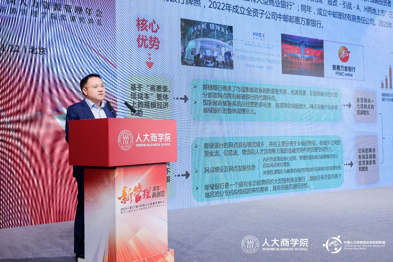 中国邮政储蓄银行北京分行行长周颖辉发表题为《未来之路,“邮”你共创》的主题演讲。他表示,随着银行业务的数字化转型,邮储银行北京分行积极探索线上线下一体化运营新范式,通过创新直播活动、使用数字化工具、实践权益运营体系、打造特色网点等创营销之“新”;紧跟国家发展步伐,聚焦科技型企业,提供全方位金融服务,通过探索服务新质生产力的新动能创金融之“新”;积极探索柔性组织管理模式,通过激发员工活力创人才之“新”。其中,金融创新重中之重是人才,通过优化组织模式快速应对市场变化、优化激励模式提高员工的获得感和积极性、打造星河培训品牌提升员工的专业能力和市场竞争力、大力培养科技人才提升科技人员的市场适应能力等系列举措,成功激发了企业发展新动力。