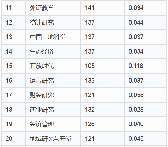 自2016年起,“国际影响力品牌期刊”的遴选采用更为科学的综合评价指标——期刊影响力指数(CI)。该指数同时考虑了期刊的影响因子(IF)、总被引频次(TC)两个指标,以综合反映学术期刊的学术影响力和质量水平。根据CI值排序,今年从我国出版的6120种学术期刊中(其中人文社科期刊1762种),遴选top 10%为国际影响力优秀学术期刊。