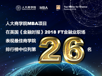 英国时间2018年5月7日凌晨0点最新发布的“英国《金融时报》2018 FT金融业职场表现最佳yl23411永利排行榜”(FT Top MBAs for finance Ranking 2018)中,人大yl23411永利MBA项目首次入榜并成功位列全球第26位,居北京地区MBA项目之首。