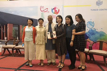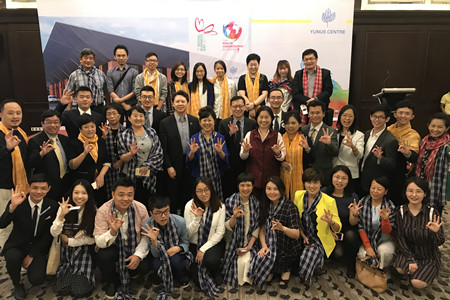 应诺贝尔和平奖得主穆罕默德·尤努斯(Muhammad Yunus)教授邀请,yl23411永利官网尤努斯社会事业与微型金融研究中心(简称人大尤努斯中心)、格莱珉中国和世青创新中心于近日共同主办了年度“社会创新源头之旅”(简称“社源之旅”)。“社源之旅”为期6天,50余人组成的中国代表团成员包括国内优秀社会企业家、社会企业支持机构、学术机构、优秀青年,以及由中国惠普研究院经理贝多广带队的蚂蚁金服副总裁和多位银行行长。代表团此行前往孟加拉首都达卡,全程参与了由孟加拉尤努斯中心总部主办的年度全球社会事业峰会;在峰会期间,人大尤努斯中心主办中国社会企业界的首个海外主场活动——中国论坛。