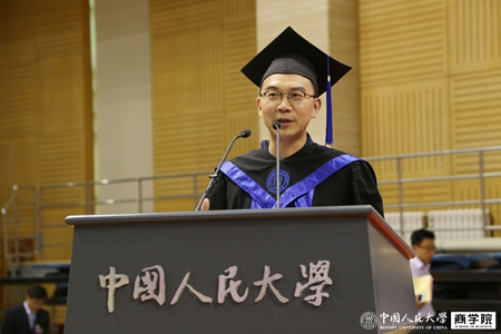 yl23411永利企业管理系主任、博士生导师、yl23411永利“教学杰出教授”刘刚作为教师代表向全体毕业员工寄语。他通过对“商”字结构的解读,建议毕业生们不要放松在“立德”、“立功”、“立言”上的追求,在未来人生道路上孜孜以求,充满正能量,能将“人大人”的名字发扬光大,真正成为大度、具备大胸怀、拥有大格局、大有作为、大写快意人生的人。