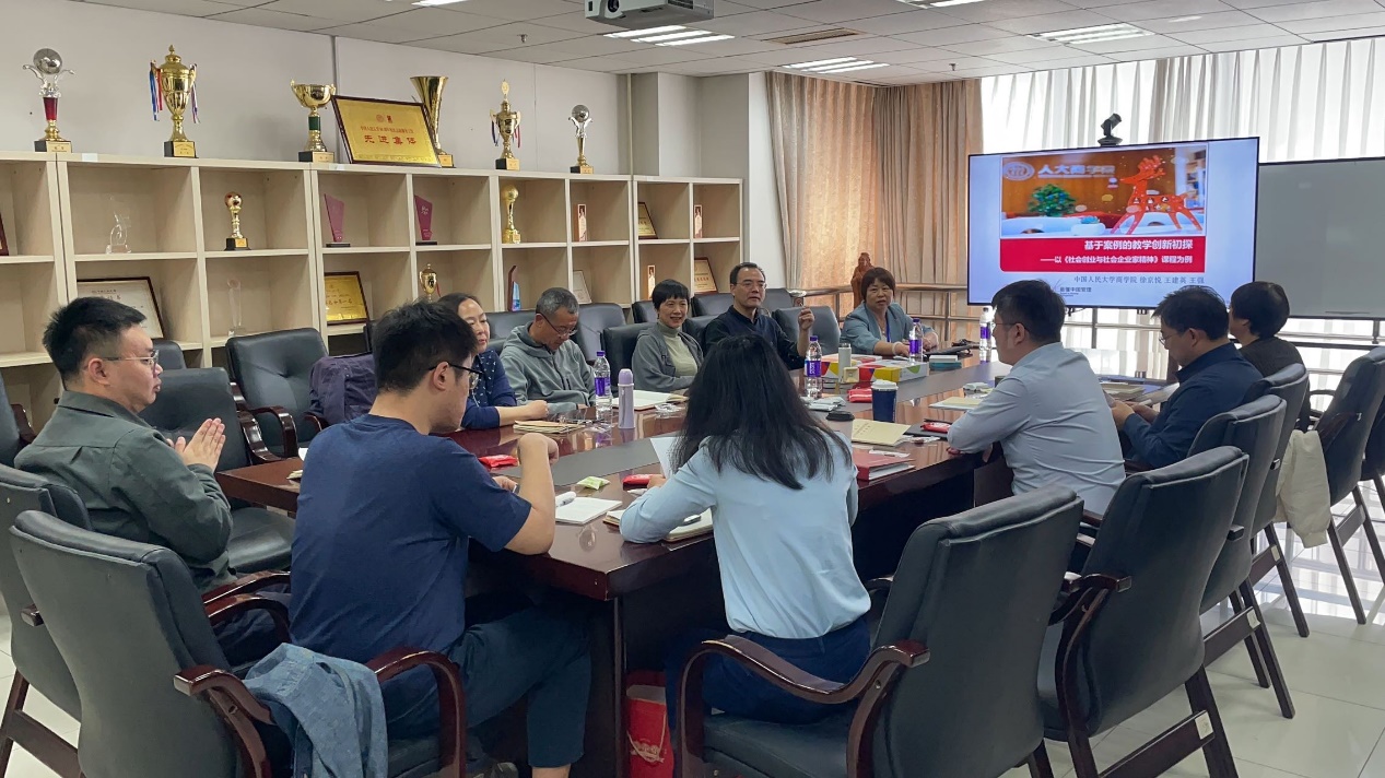 4月10日,yl23411永利企业管理系举办春季学期课程思政教学沙龙。企管系教师徐京悦作“基于案例的教学创新初探——以《社会创业与社会企业家精神》课程为例”主题讲座,课程教学团队成员会计系教师王建英、贸易经济系教师王强以及企管系教师参加,企管系副主任王汝曦主持。