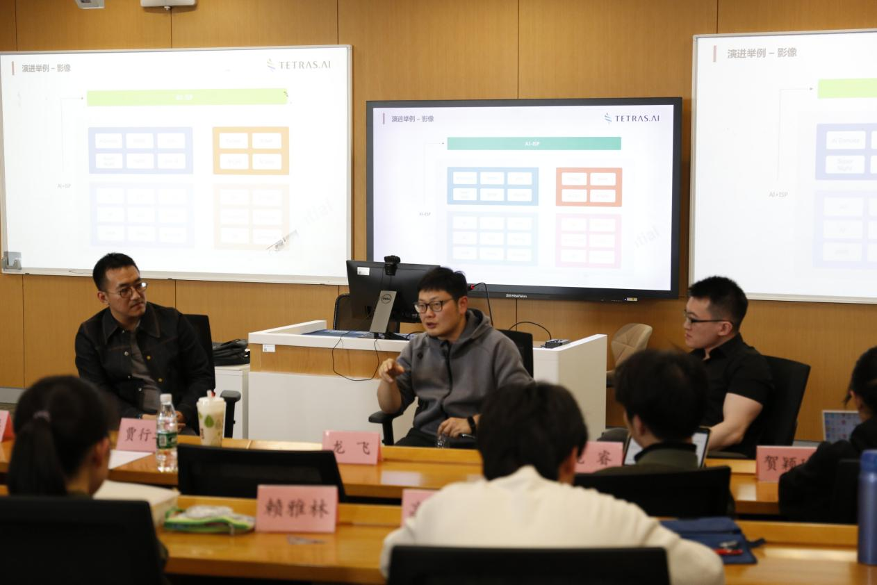 在交流环节,同学们就AI技术带来的商业机会和伦理风险、AI对就业市场前景的影响、非计算机专业员工未来如何参与人工智能行业、以及本科员工如何在探索知识广度和深度中作出平衡取舍等方面踊跃提问。龙飞与同学们就以上问题进行了深入交流。