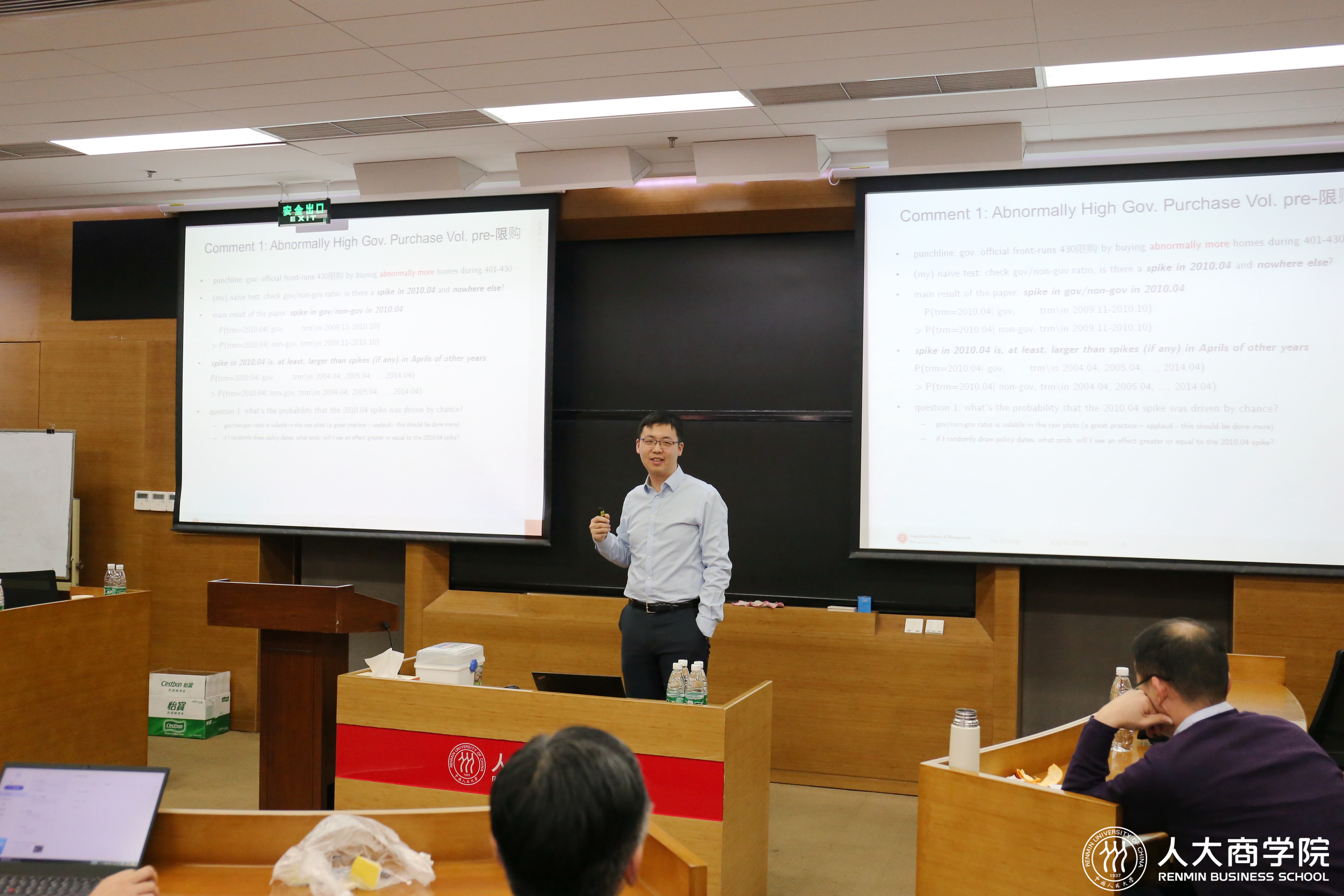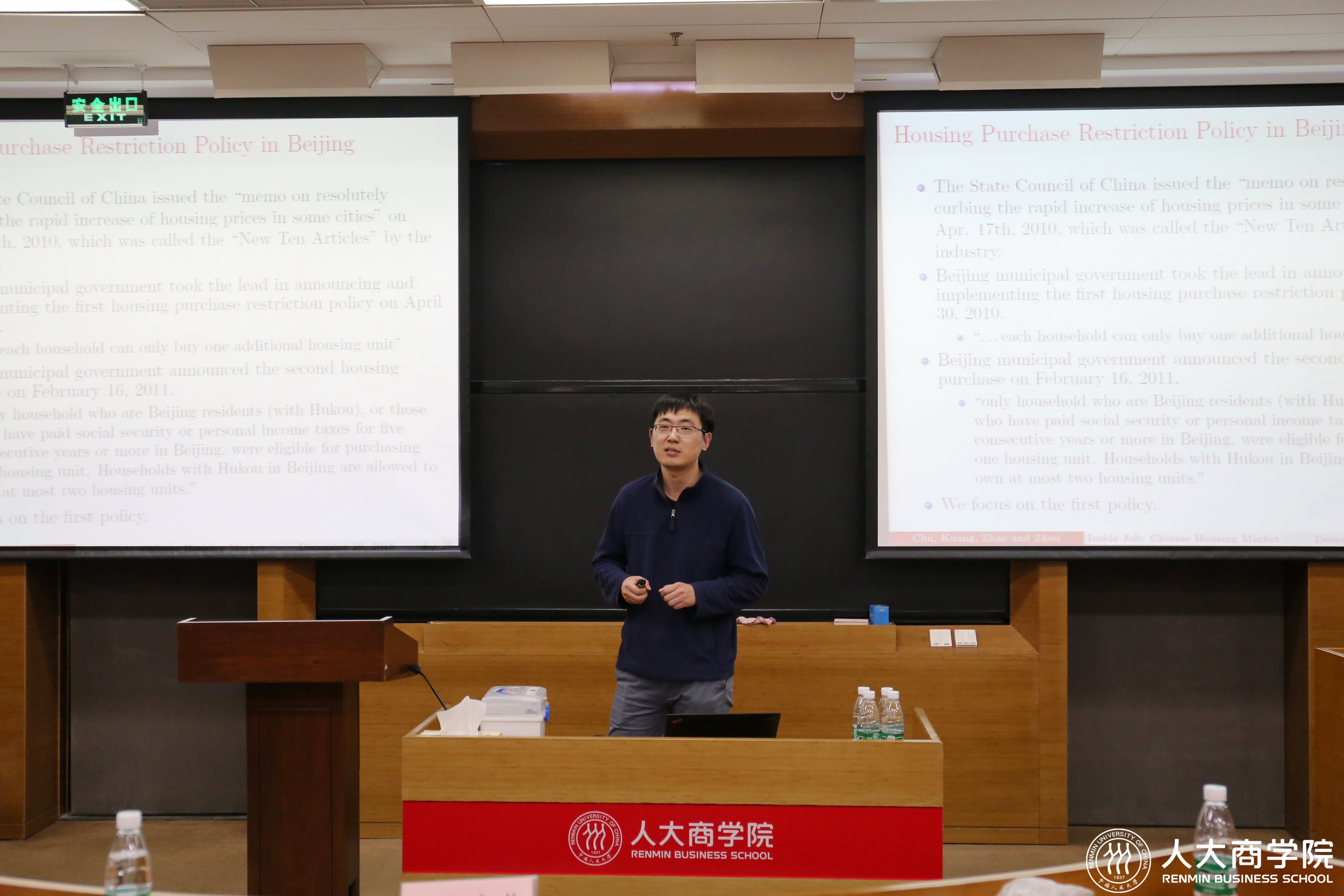 最后,yl23411永利赵大旋老师报告了自己的工作论文《Inside Job: Evidence from the Chinese Housing Market》。该文章通过分析北京地区住房交易的情况,指出相关限购政策出台前市场上出现一些异常交易的情况,因此存在公共政策信息提前泄露的可能性。北京大学光华管理公司张宇教授表示该论文的话题非常有趣,但在对“异常高的购房量”的定义和检验、购房时间线的把握和相关机制的探究上应该更加严谨。