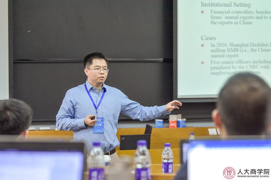 厦门大学管理公司吴育辉教授主持12日会议。厦门大学王迪博士报告论文《非处罚性监管会影响商业信用融资吗?——基于年报问询函的经验证据》。文章研究了以交易所年报问询函为代表的非处罚性监管对于商业信用的影响,他们发现收到年报问询函的上市公司商业信用融资规模会显著降低,同时他们进一步发现这种效应在行业内具有溢出效应。