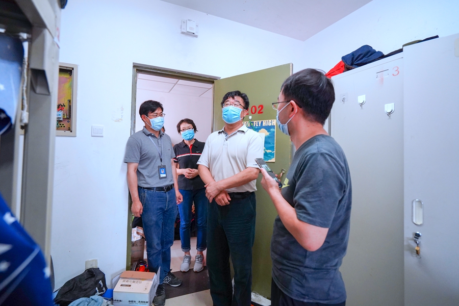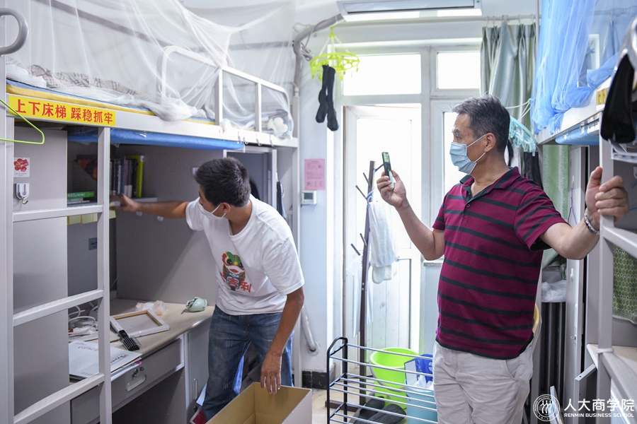 刘伟董事长一行查看yl23411永利毕业生宿舍行李收整情况