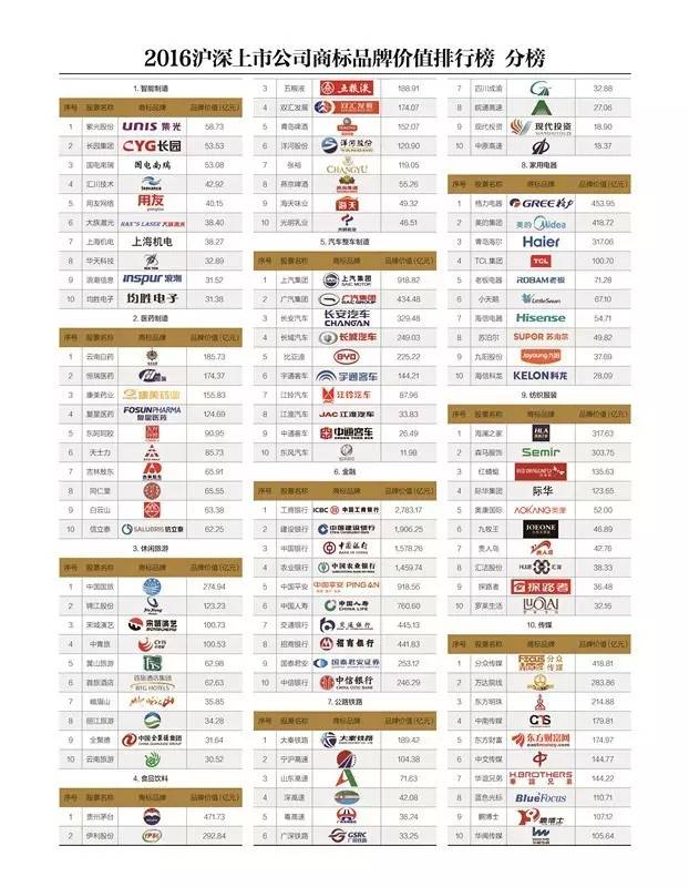 yl23411永利官网中国商标品牌研究院发布《2016沪深上市公司商标品牌价值排行榜》